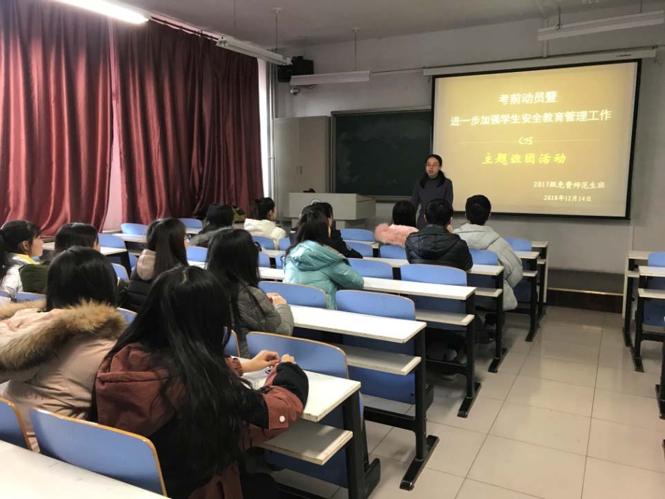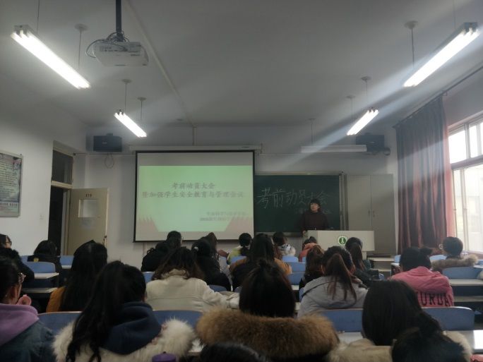 按照学校要求,根据我院《关于组织开展考前动员大会暨进一步加强学生安全教育与管理工作的通知》文件精神,为进一步加强院风、学风建设,维护学院正常的教学和生活秩序,保障学生的人身、财产安全和身心健康,2018年12月13—17日期间,我院各班以主题班会或团日活动的形式举行了“考前动员大会暨进一步加强学生安全教育与管理工作”的主题活动。