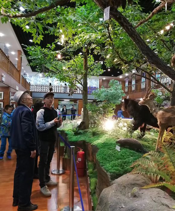 国庆节当天,有许多父母陪同孩子一起来生物标本馆参观。家长们希望孩子能够通过观察标本实物,提高对自然生物的兴趣,丰富孩子的科普知识。bat365在线平台官网登录生物标本馆展览厅所展示的各类生物标本多达2400余份,涵盖部分国家一级保护动物,绝大部分标本为生科院的几代师生和校友,在几十年的时间里在全国乃至世界各地收集制作积累。
